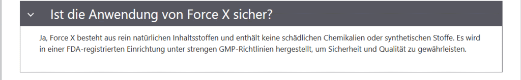 Ob im Alltag, im Beruf, im Training oder in der Partnerschaft – Force X sorgt dafür, dass man sich wieder kraftvoll, präsent und stabil fühlt. Die Formel ist dabei auf Langzeitwirkung ausgelegt: keine kurzfristigen Push-Effekte mit anschließendem Leistungstief, sondern echte Optimierung von innen heraus.